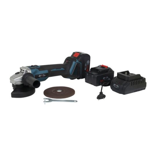 With this angle grinder you can saw and grind through different materials. The grinder can also be used to sand and deburr materials. The grinding machine runs on a battery. The angle grinder includes two batteries and a battery charger.